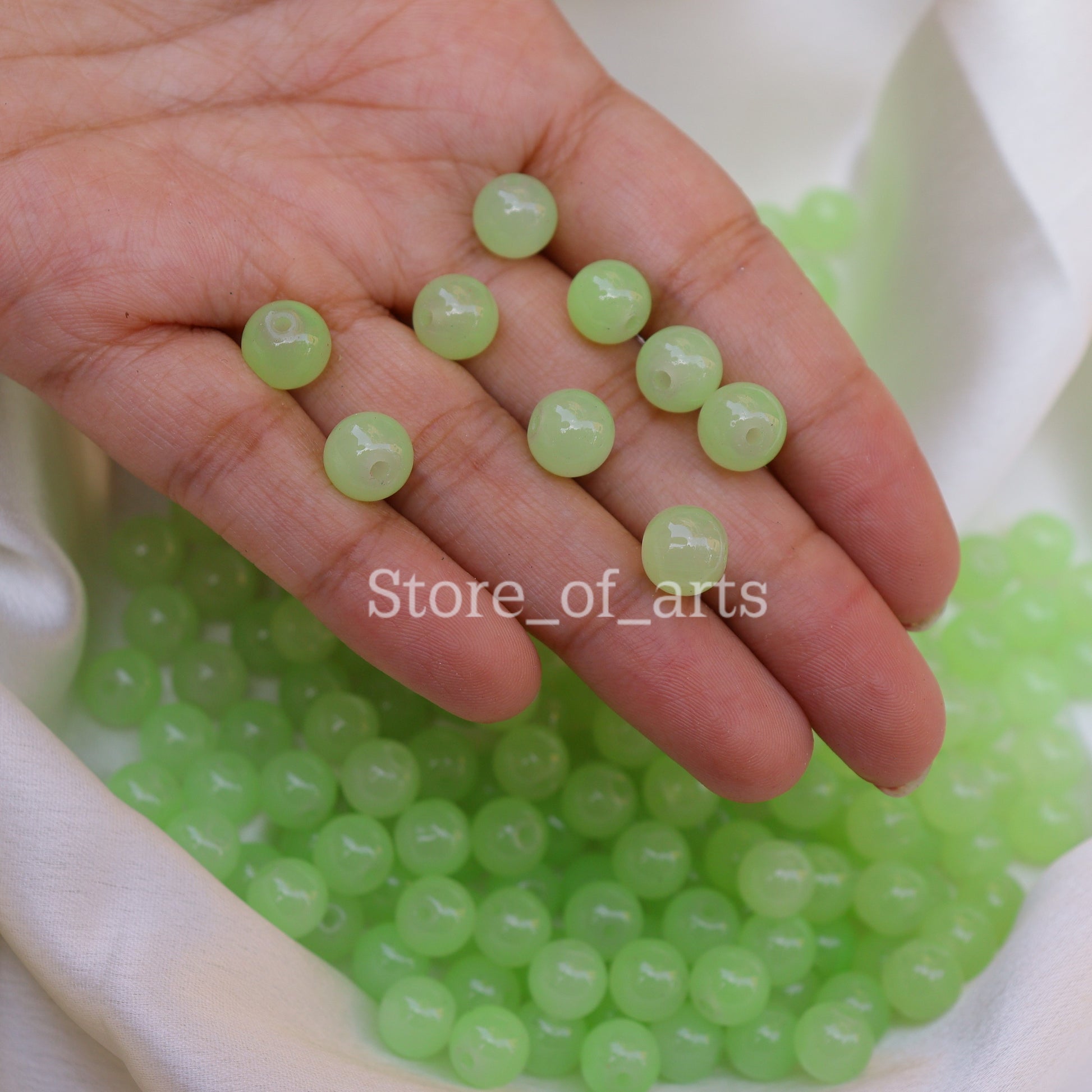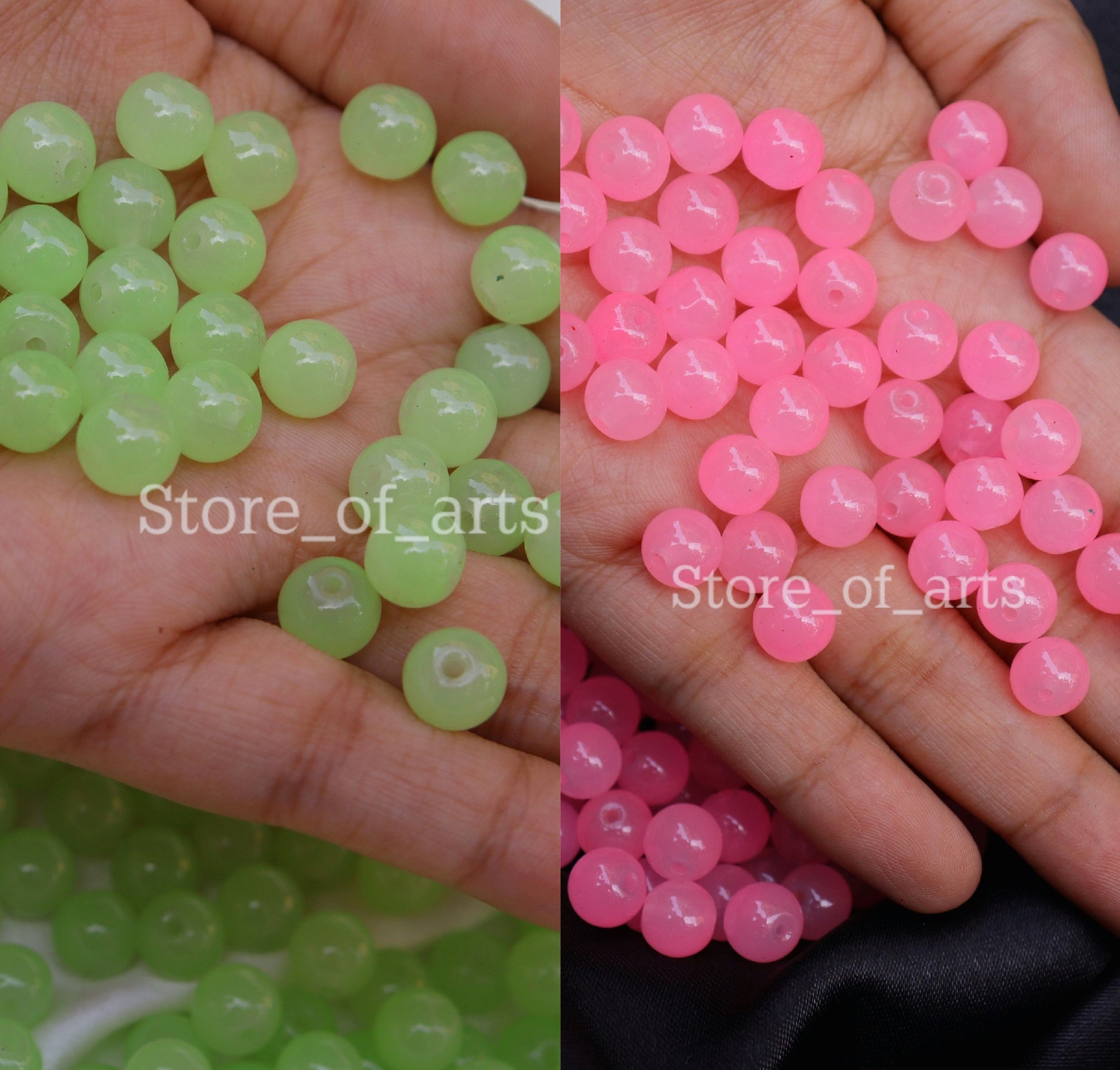 Glass beads of 8mm Light Green and Light Pink beads combo for jewelry making, Each pack contains 100pcs (Total 200pcs)